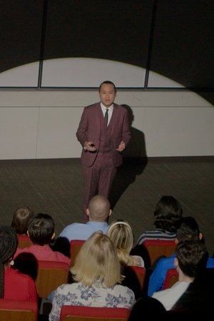 An eccentric motivational speaker takes the stage at an international conference to give his magnum opus speech on "free thinking."